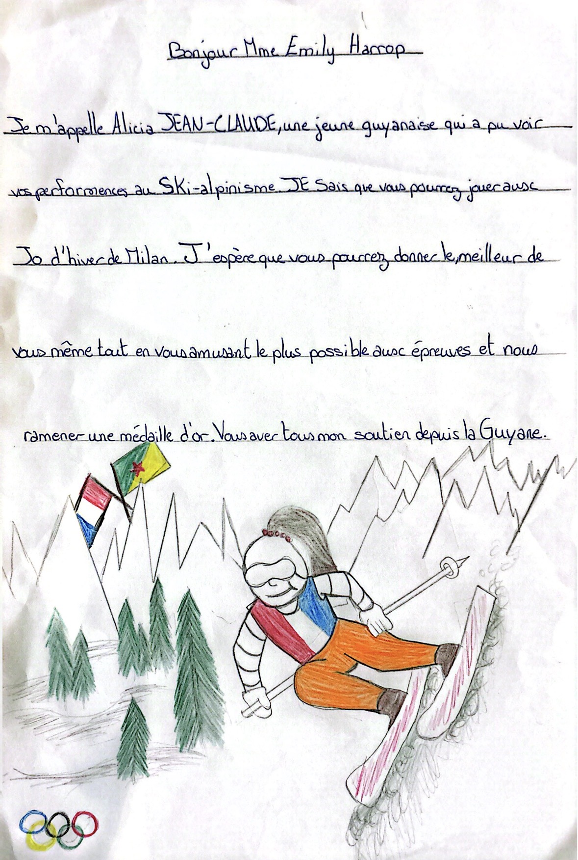 Cette activité avait pour objectif la rédaction d’une lettre d’encouragement destinée à un athlète de haut niveau en lice pour les Jeux Olympiques d’Hiver de Milano-Cortina 2026.